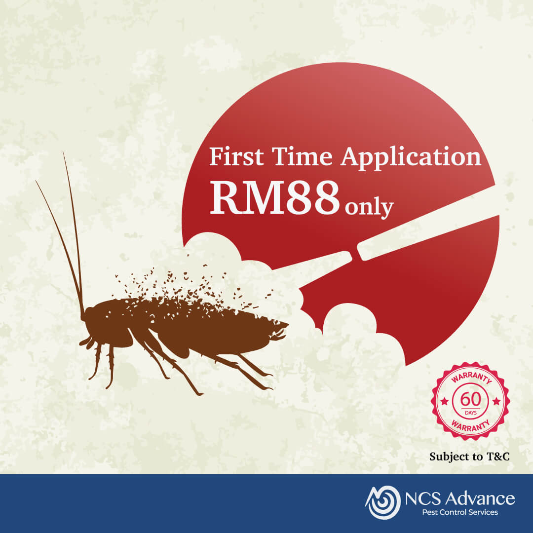 First time application promotion for pest control service by NCS Advance Pest Control.